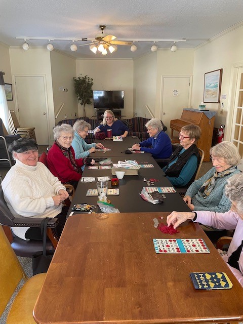 The large community room hosts a number of activities including yoga, presentations on current events, book group discussions, guest musicians, bingo, and other events. When not in use, it is available (through reservation) for residents who wish to host a party, family reunion or other event.